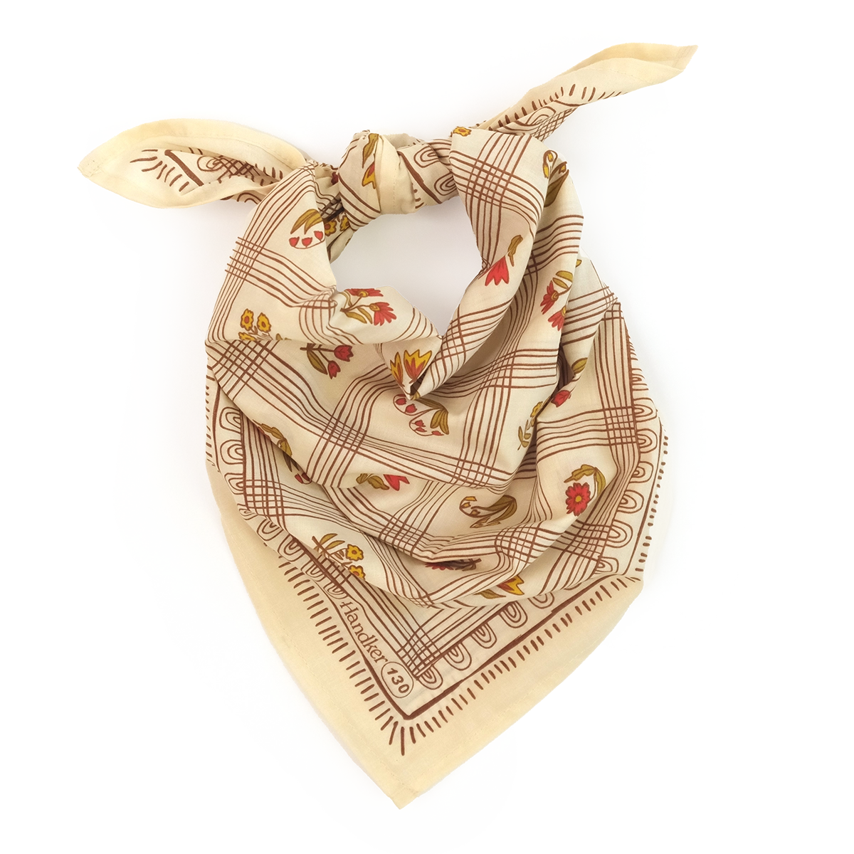 It’s Laura! She’s the type of person you meet and feel like you’ve known forever. Her home always smells like freshly-baked bread, and although she’s tender-hearted, her hands are rough with callouses from years of steer-corralling, woodworking, and canoe-paddling. When you head home, you know Laura will be in the den reading with a pot of your favorite meal on the stove (she remembered!). Color: Cream, brown, rust, olive green Material: 100% premium cotton Sizing: 22x22 inches Designed in the U.S. Hand screen-printed in India A bandana can be used in so many different ways! Use it as a handkerchief on hikes, wear it in your hair or on your clothes to spice up an outfit, or tie it around your pup's neck to make them look dashing. Have fun with it!