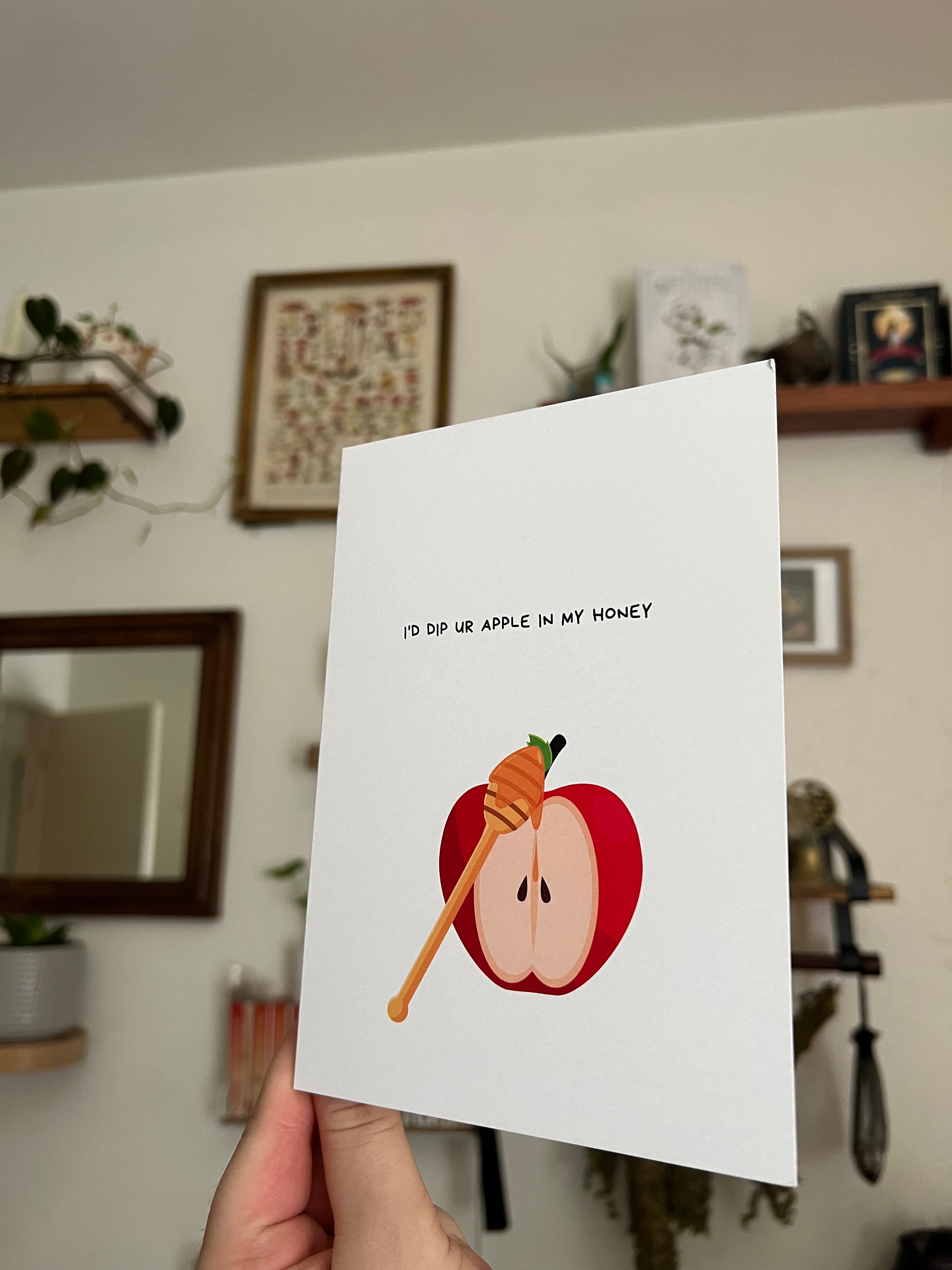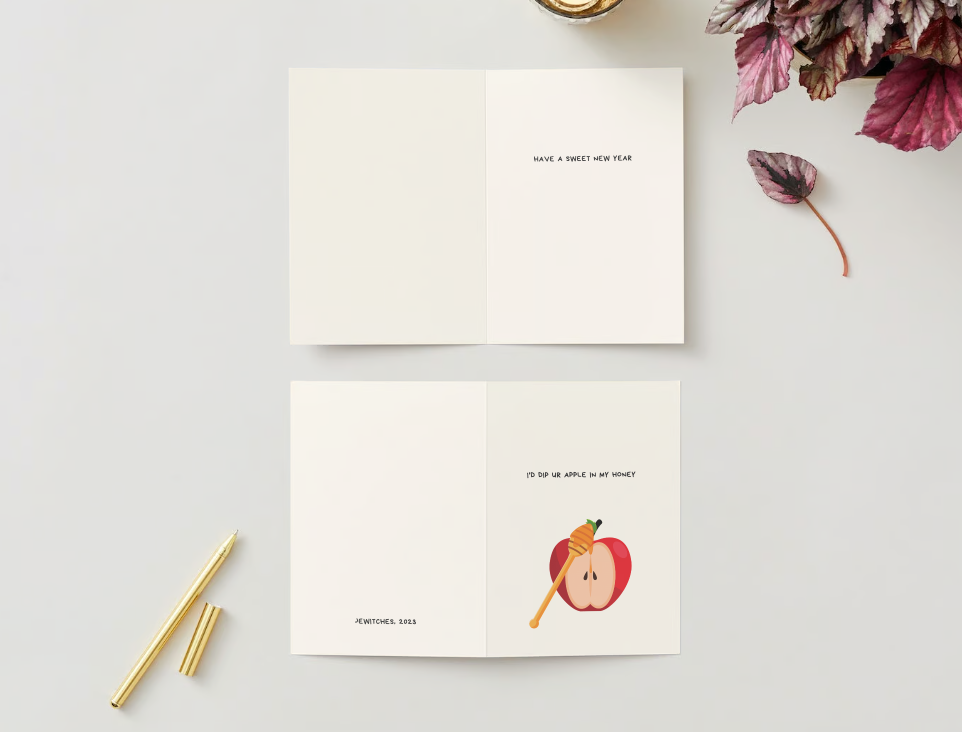 Show a special someone you care this Rosh HaShanah with this sweet card! With the saying "I'd dip ur apple in my honey," your loved ones will feel just as special as a honey-dipped apple. Yum!
